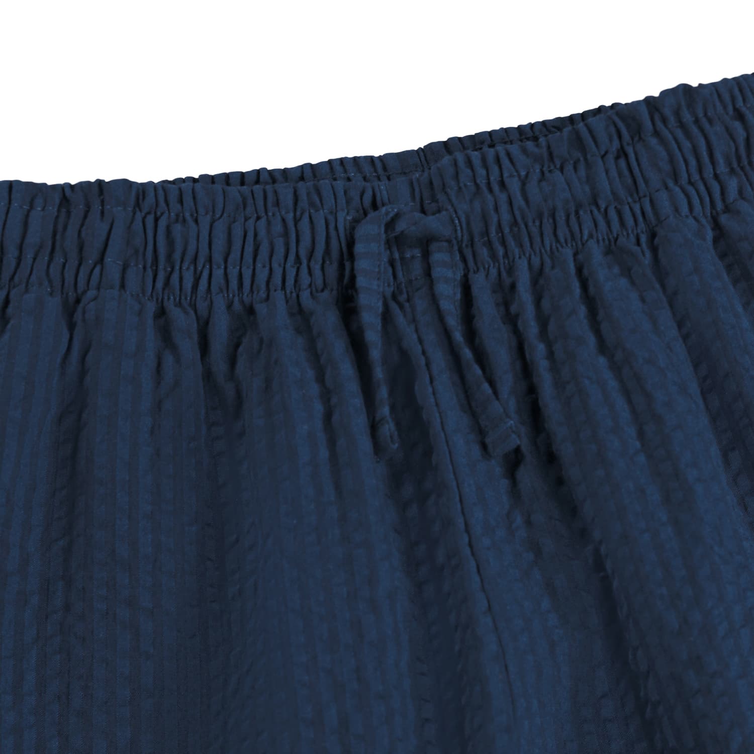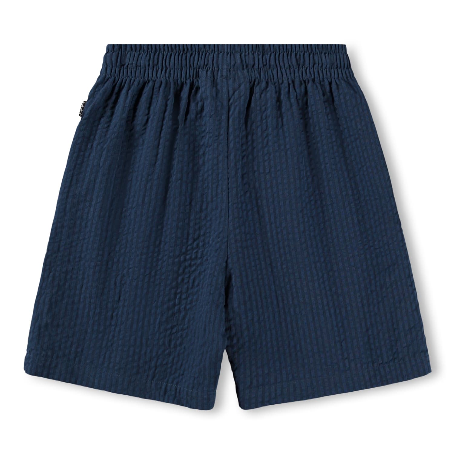 Pantaloni scurti in dungi albastri , produs din bumbac organic moale cu un fit relaxant si comfortabil. Sortii au buzunare in parti si elastic in talie cu sireturi ajustabile in fata pentru un fit optimal.