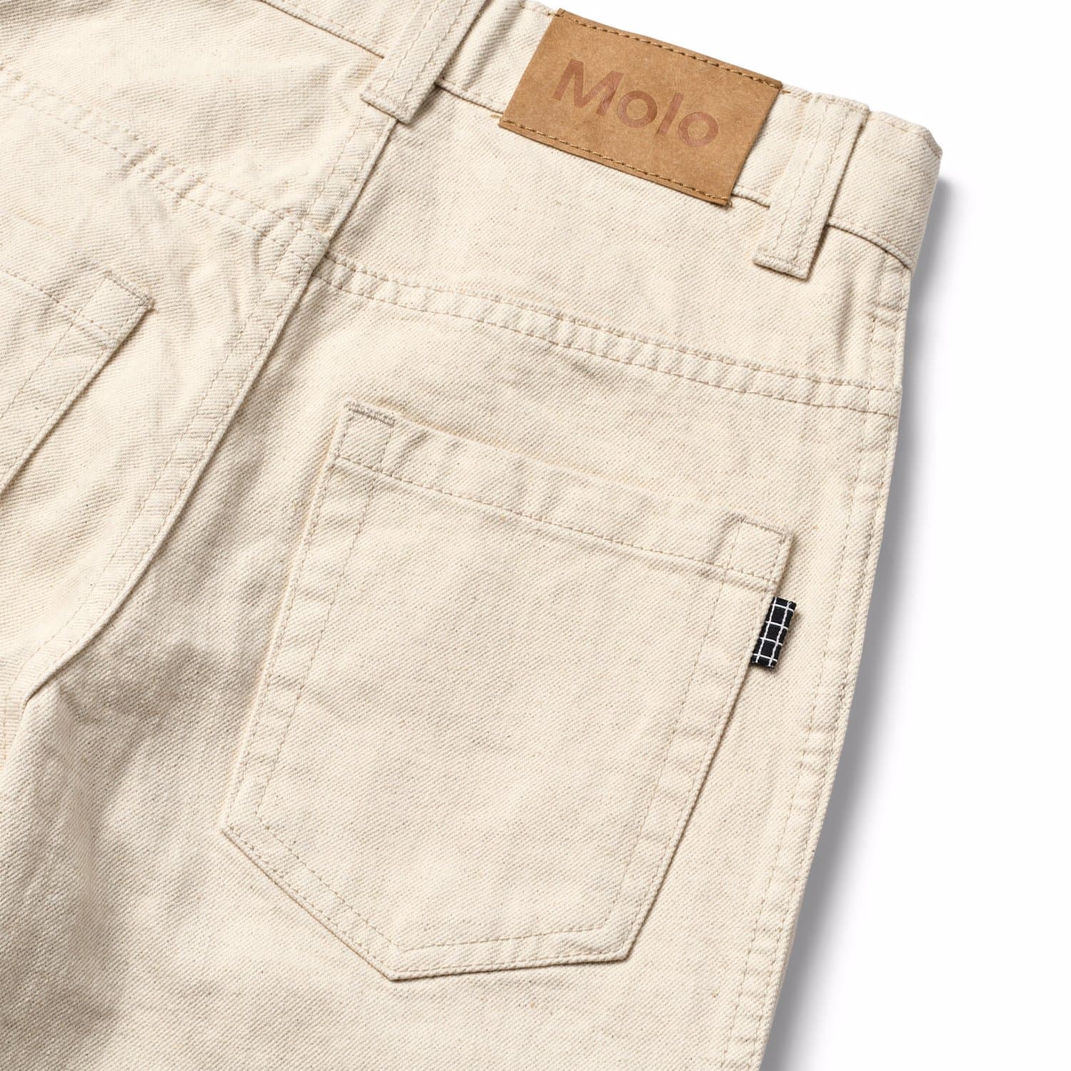 Blugi din denim bej produsi din bumbac, inspirati din stilul skater. Pantalonii au 5 buzunare si un elastic ajustabil in talie .Marimile 92-134 au capse , pentru a fi usor de incheiat.