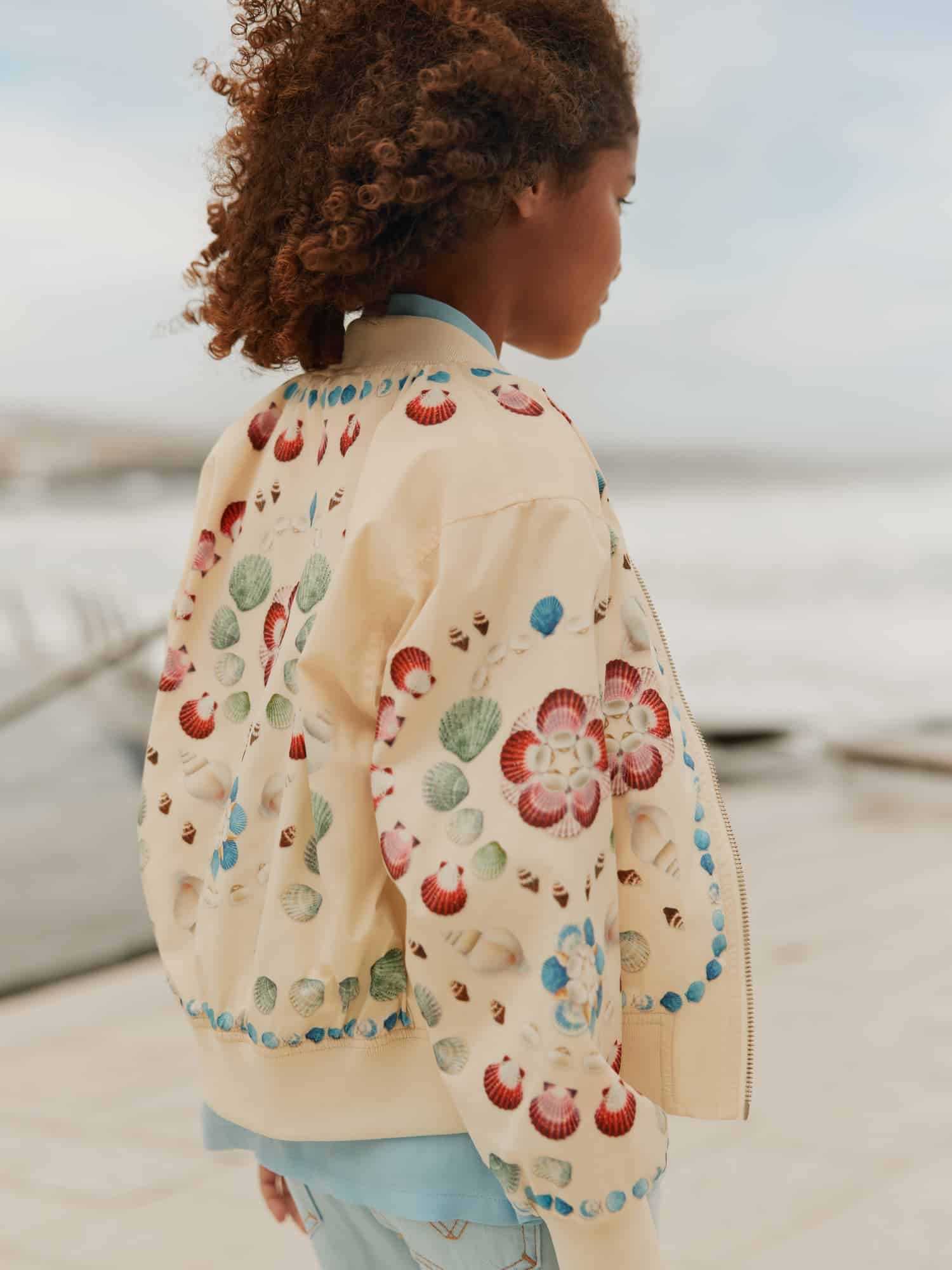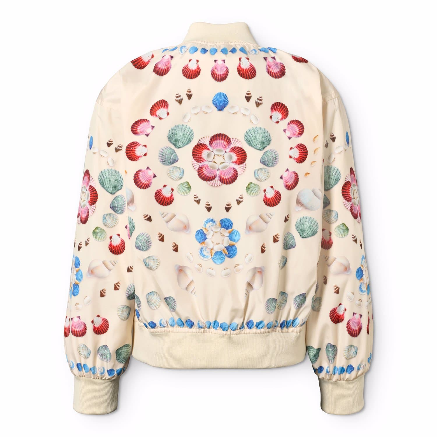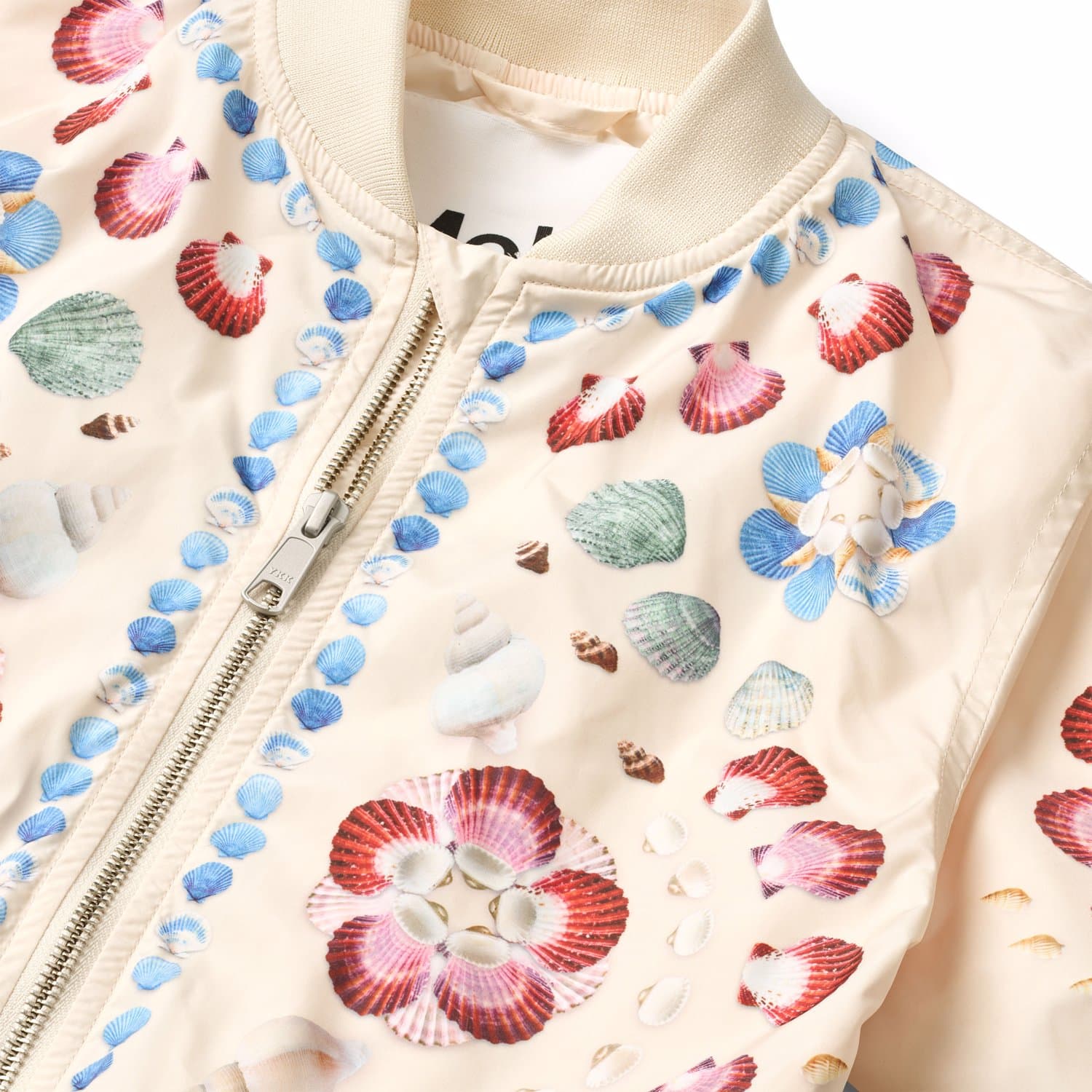 Scurta bomber alba anti vant si ploaie cu un print colorat floar si scoici. Jacheta are fermoar in fata si captuseala pentru a fi mkoale si confortabila. Designul jucaus cu un aer maritim – perfect pentru acest sezon.
