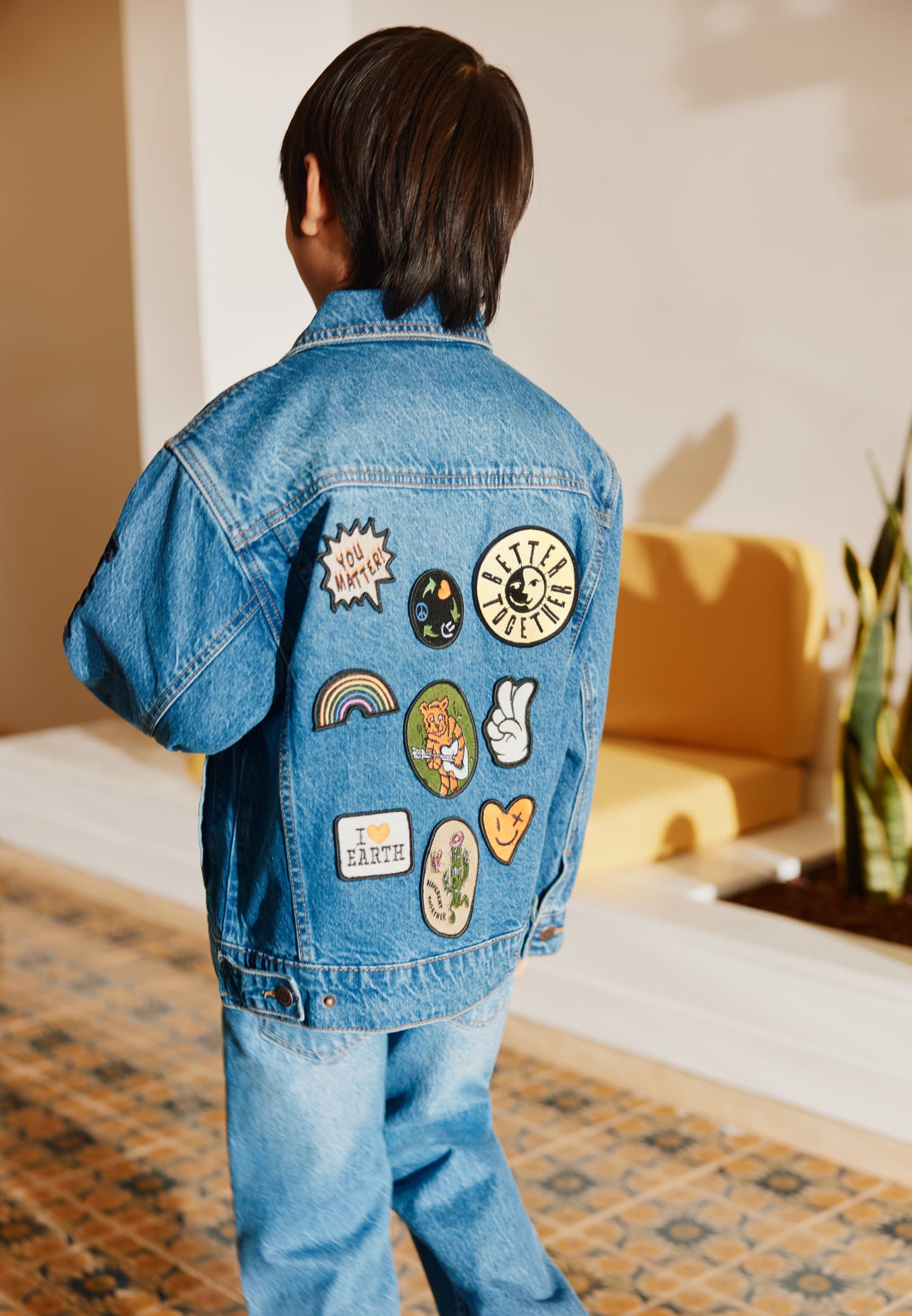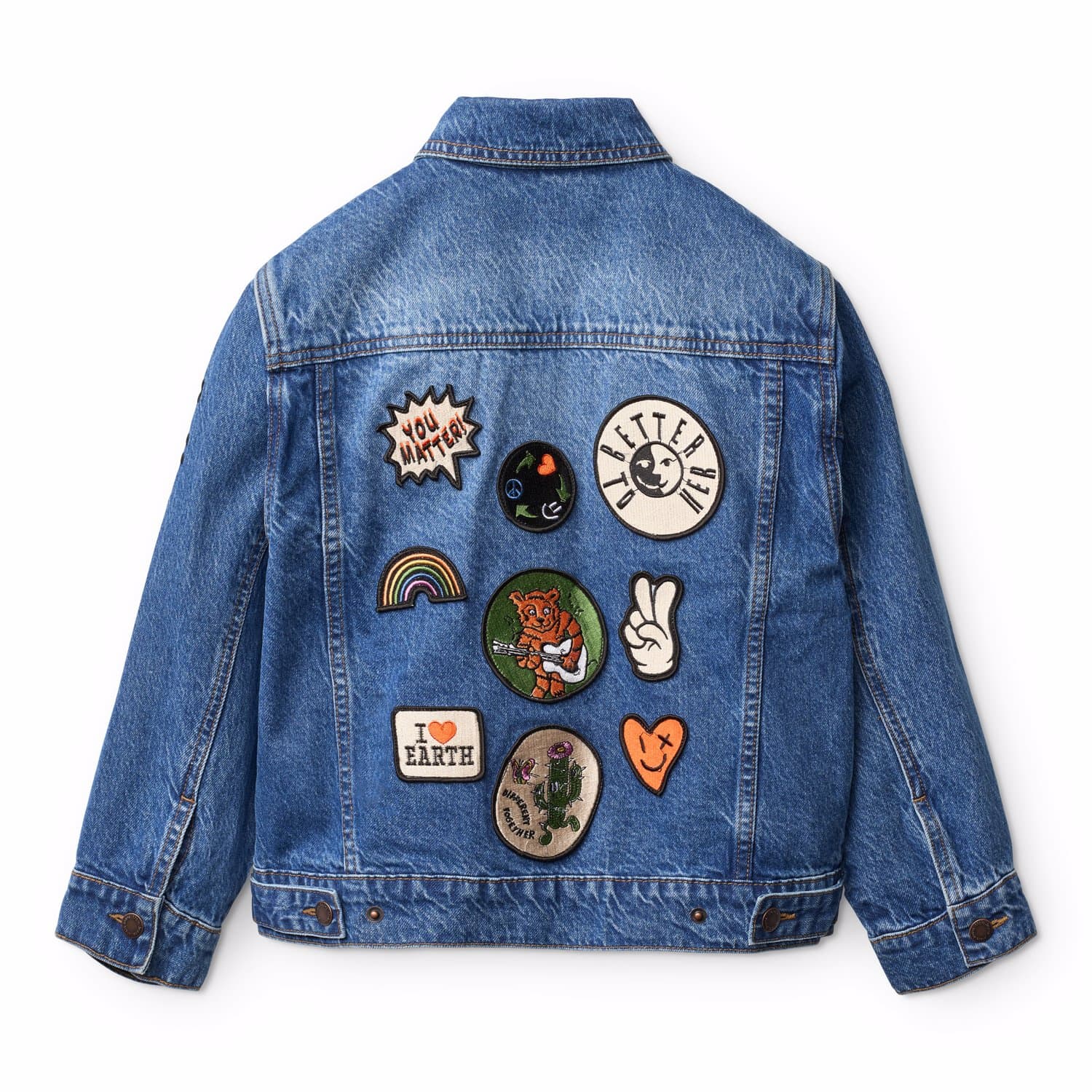 Scurta din denim produsa din bumbac cu broderii colorate pe spate, ceea ce-i da o expresie unica si personala. Scurta are un fit larg, guler, nasturi in fata, buzunare in parti si in piept, cu capse ajustabile in spate.