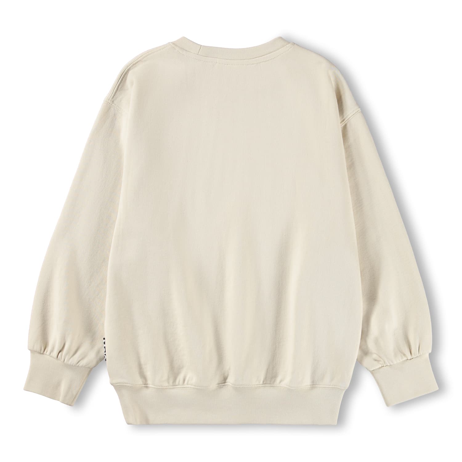 Pulover bej produs din bumbac moale , organic cu margini elsatice la git, maneci si talie. Puloverul are un fit larg si relaxat cu un curcubeu colorat brodat in fata.