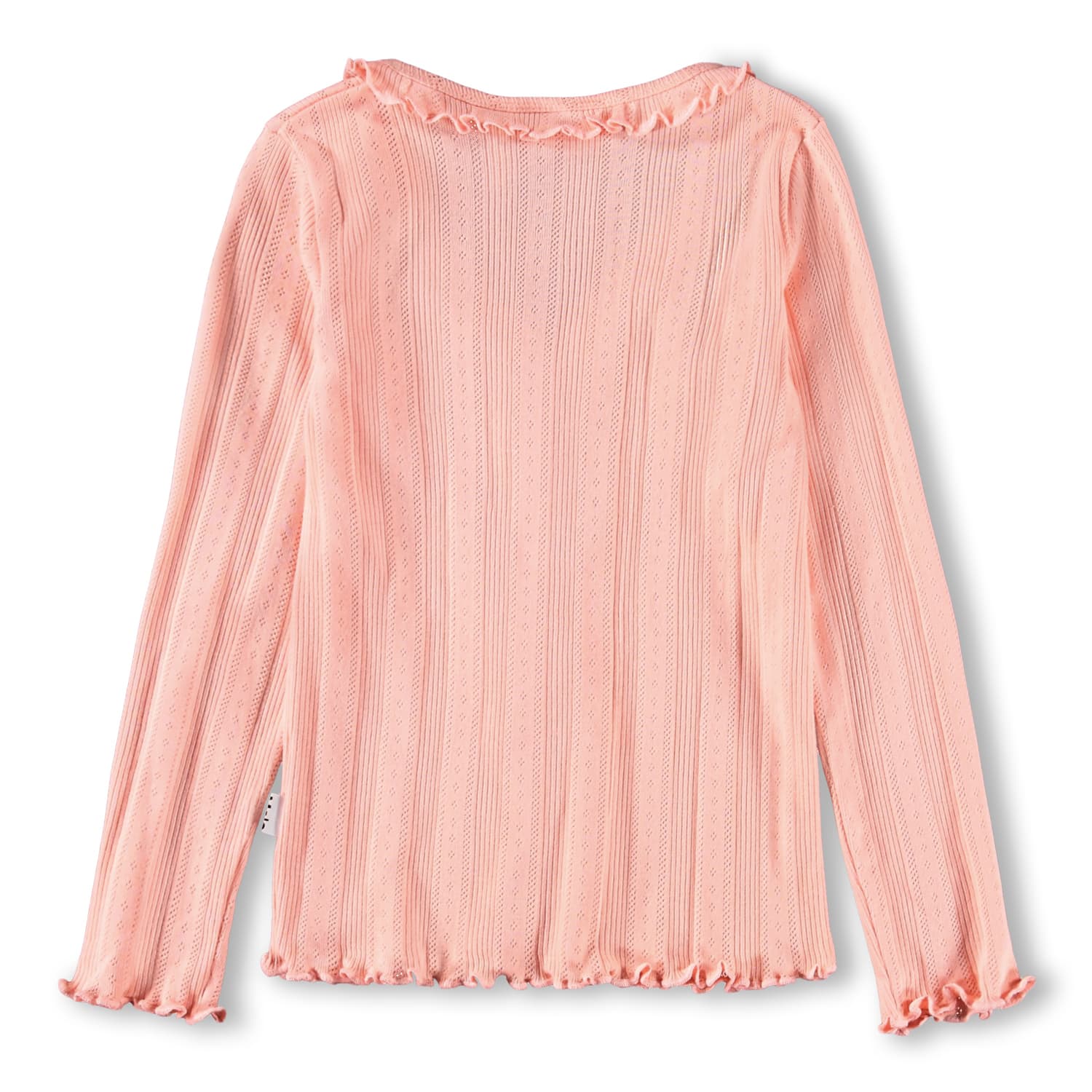 Cardigan fin jerseu din bumbac cu tricotaj fin. Modelul este cu mineci lungi , guler in forma de V si nasturi mici in fata. Detaliile cu volane la guler si margini adauga o nota romantica si jucausa.