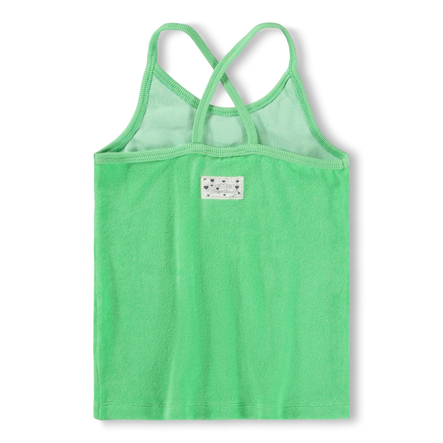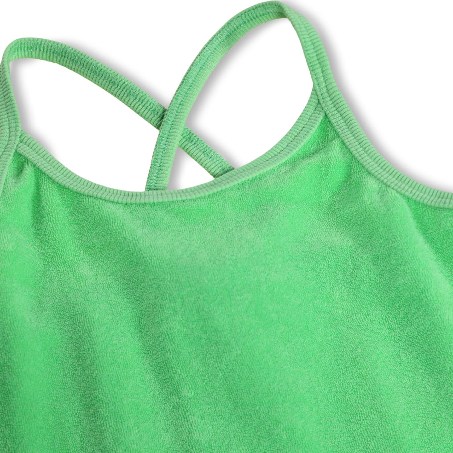 Top verde produs din bumbac moale, organic cu bretele subtiri ce se incruciseaza in spate pentru un fit perfect.