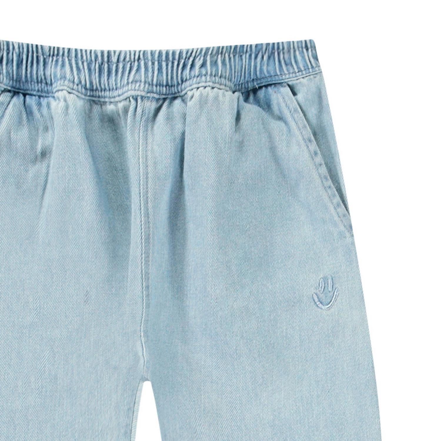 Pantaloni blue din denim pentru cei mici produs din bumbac organic . Pantalonii au un fit larg, buzunare in fata si spate, si elastic la talie pentru a fi usor de imbracat. Pantalonii sunt usori si comfortabili, perfecti pentru purtarea lor zilnica.