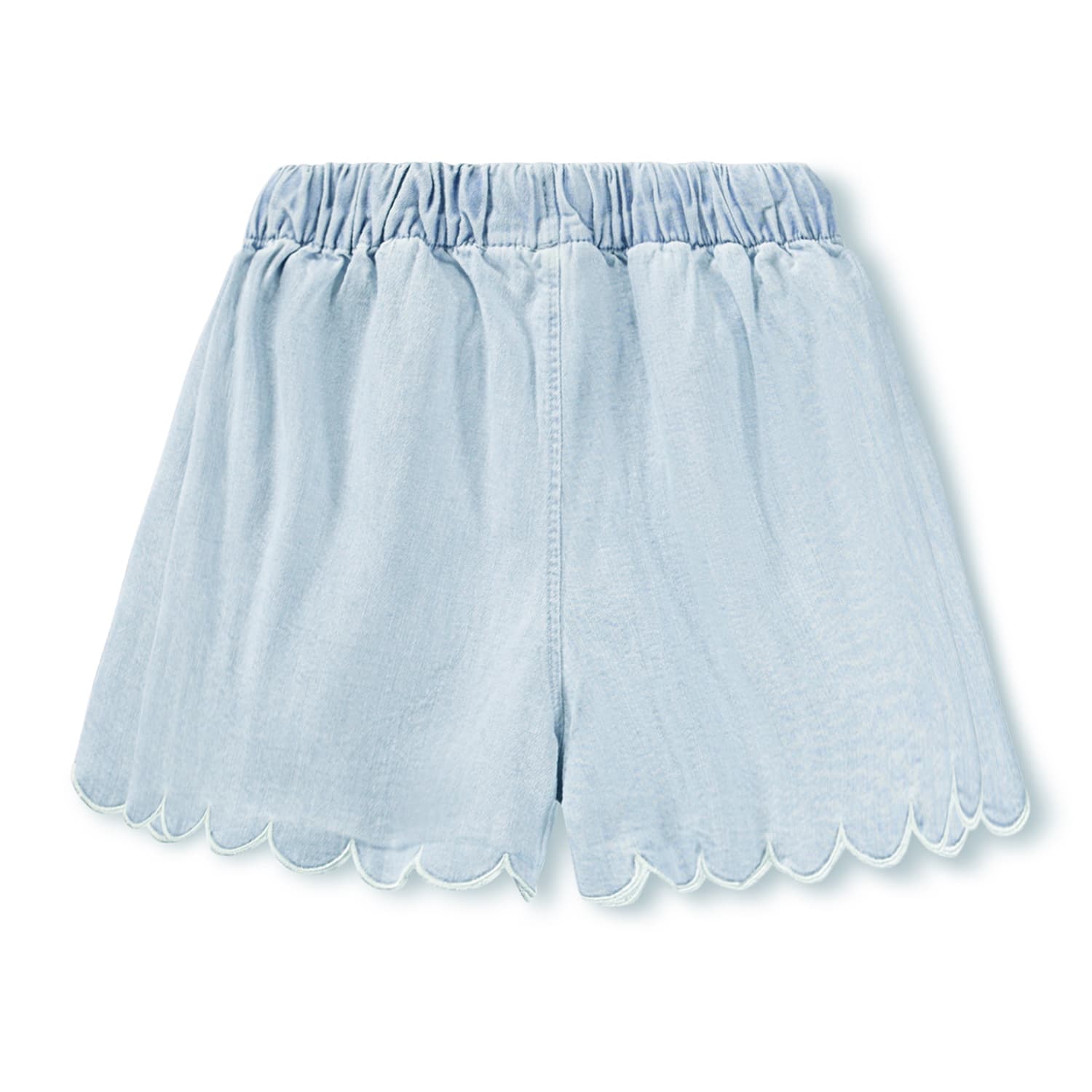 Sorti scurti blue , largi produsi din bumbac organic. Sortii au tivuri decorative, broderie fina, buzunare in parti si elastic in talie cu sireturi pentru mai mult confort.