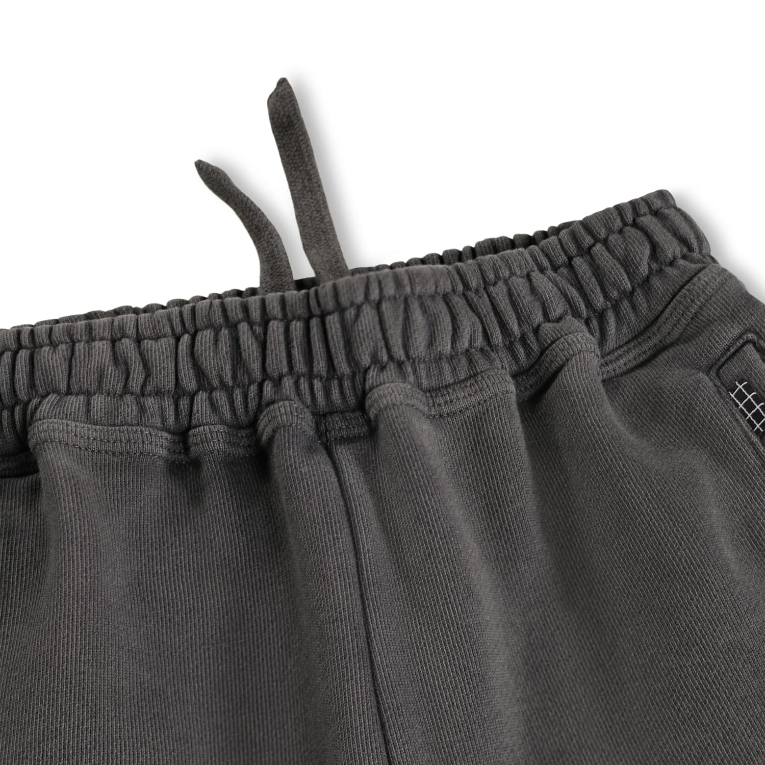 Pantaloni sport de culoarea gri din bumbac organic cu print. Pantalonii au buzunare in parti si spate, cu elastic si sireturi in talie pentru comfort.