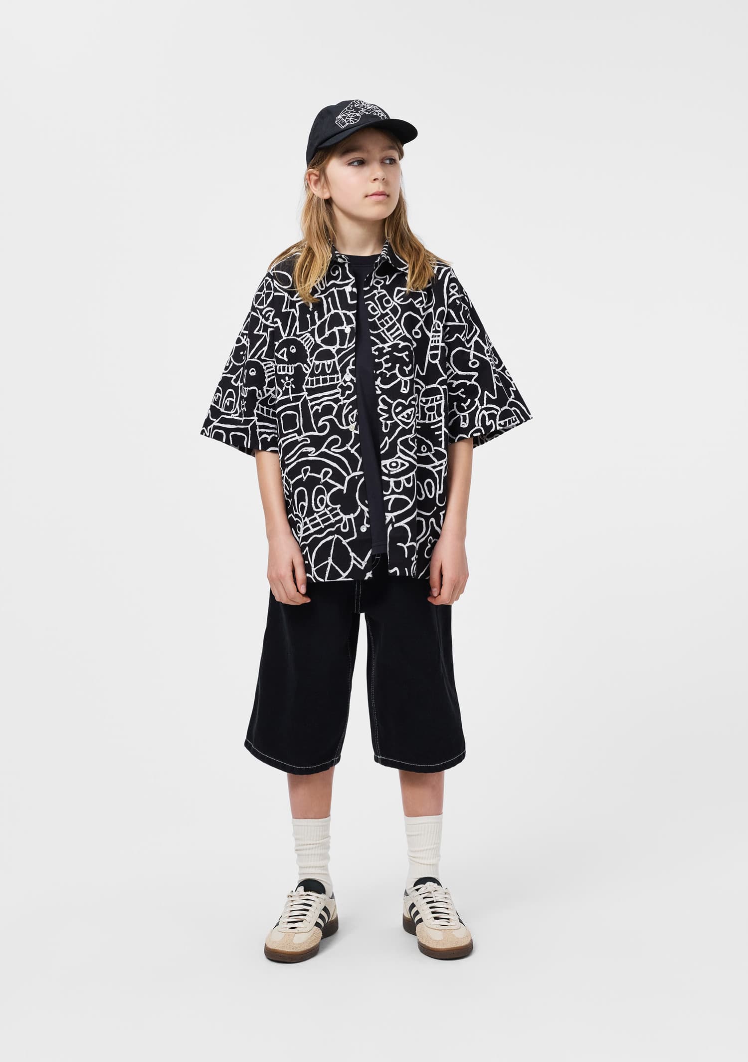 Sorti negrii din denim produsi din bumbac cu un fit relaxat si larg. Sortii au lungimea pina la genunchi , are cinci buzunare si elastic in talie pentru un fit optim.