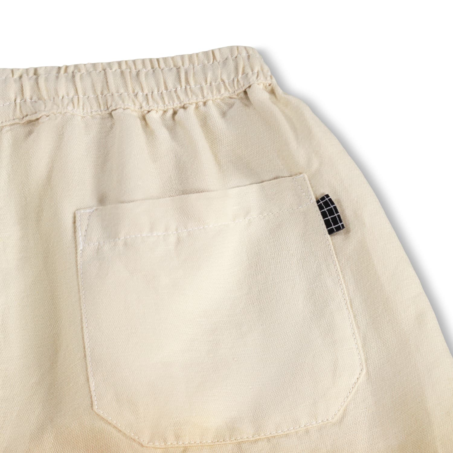Pantaloni scurti produsi din in moale si usor, cu buzunare in parti. Sortii au un fit relaxat cu elastic in talie si sireturi ajustabile.