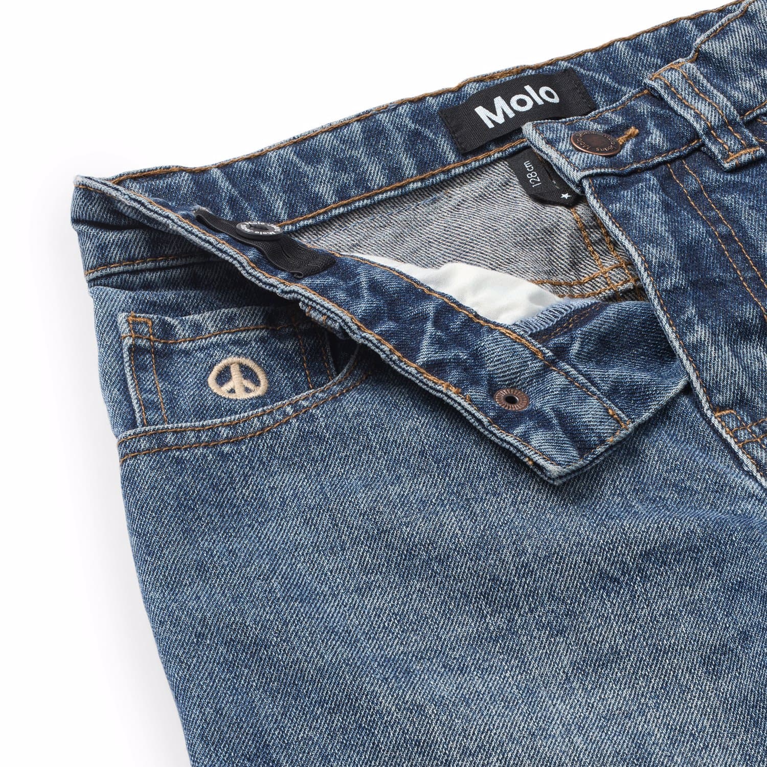 Blugi din denim albastri produsi din bumbac, inspirati din stilul skater cu un fit larg si relaxant. Pantalonii au 5 buzunare si un elastic ajustabil in talie .Marimile 92-134 au capse , pentru a fi usor de incheiat.