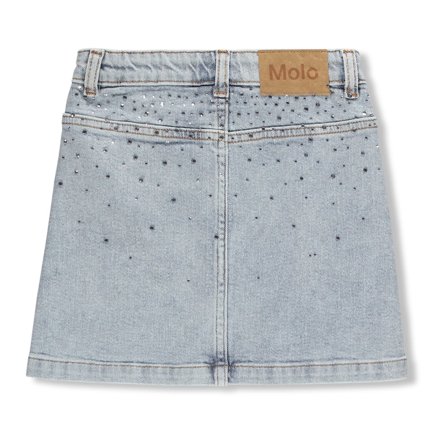Fusta albastra din denim cu capse metalice pina la marimea 140 – mari ile mai mari se incheie cu nasturi clasici. Fusta are lungimea medie, buzunare in fata, si elastic in talie pentru a fi mai bine ajustata.
