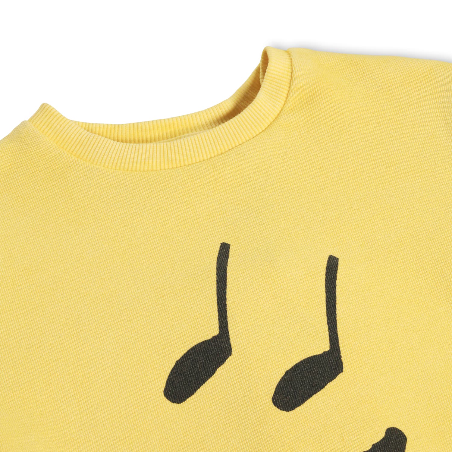 Pulover galben pentru cei mici produs din bumbac organiccu print cu tematica muzicala.