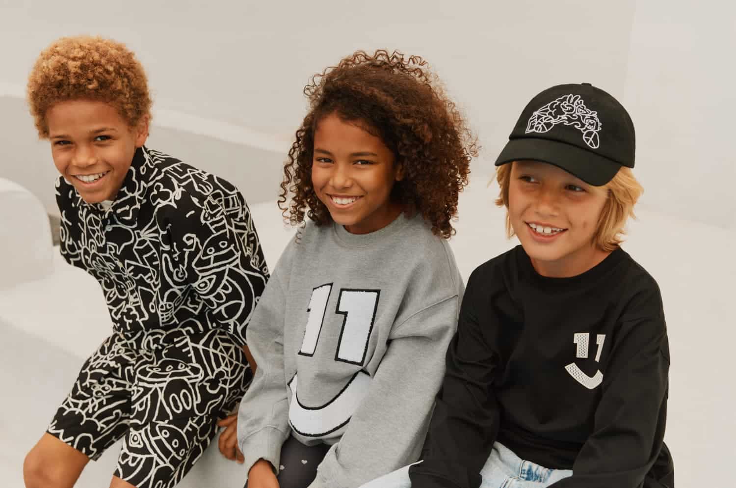 Pulover sport gri produs din bumbac moale, organic cu guler rotund si margini moi la maneci, git si talie. Puloverul are un fit oversized si relaxant cu o broderie in fata cu un zambet si numarul 11.