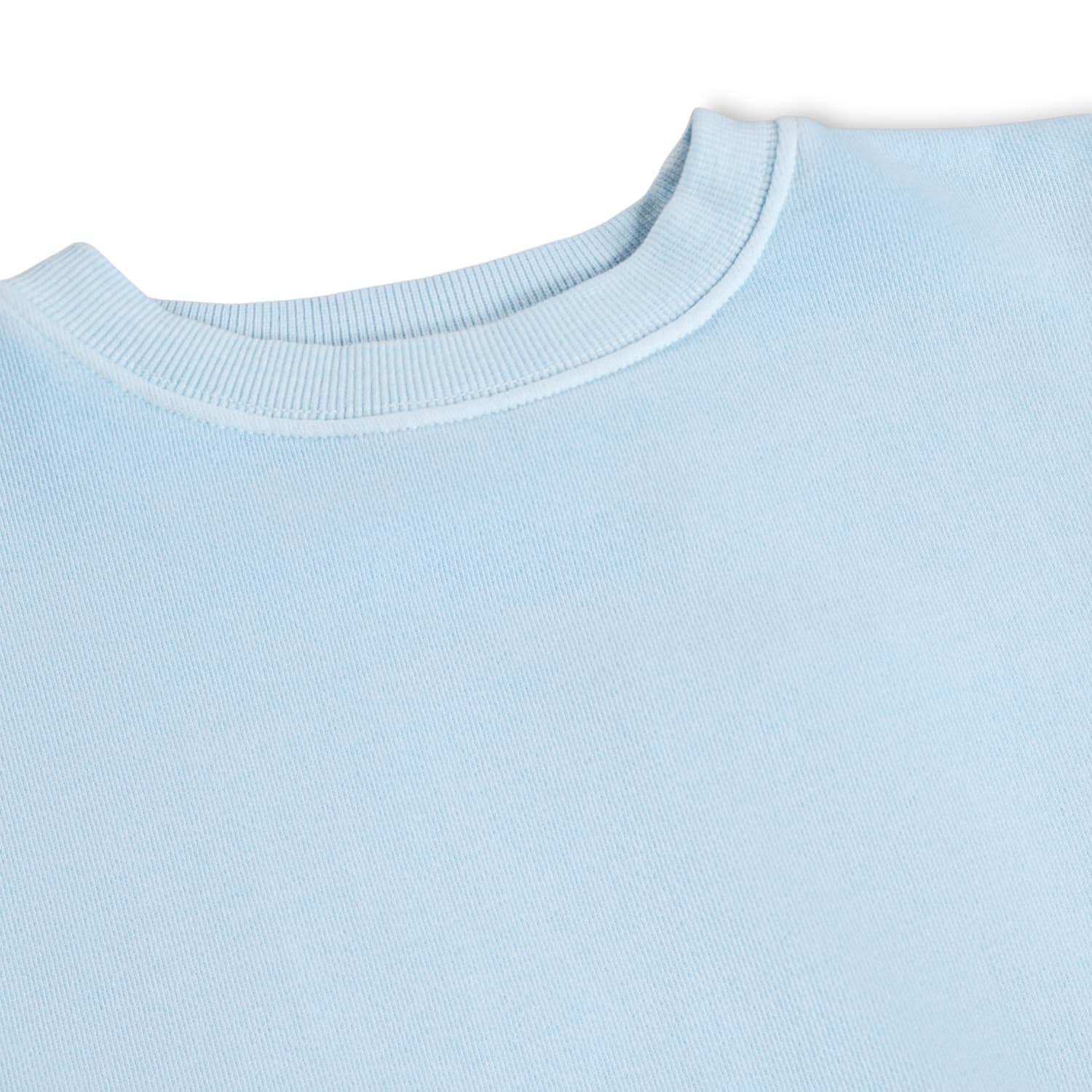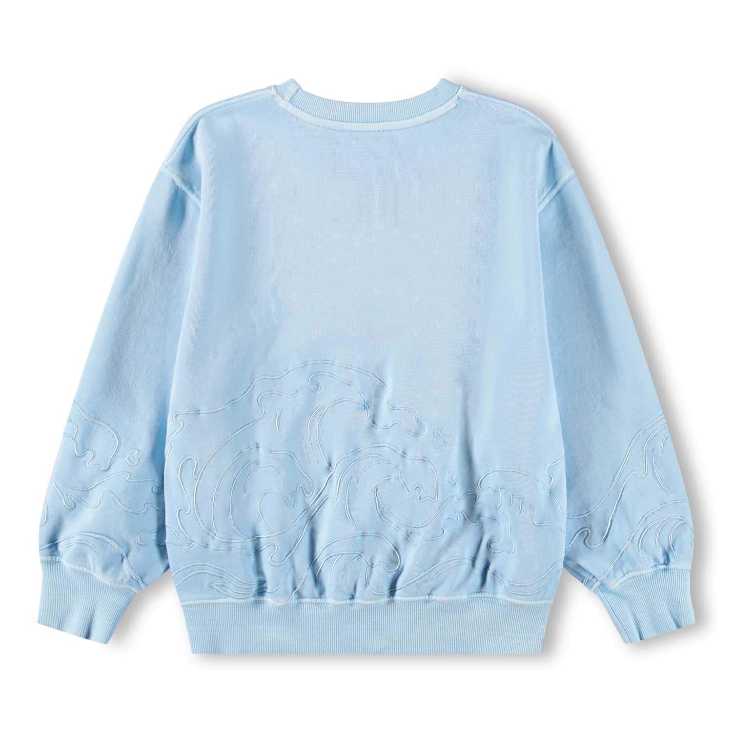 Pulover blue produs din bumbac moale, organic cu margini astriate la gat, maneci, si talie. Puloverul are un fit relaxant cu valuri brodate in partea de jos.