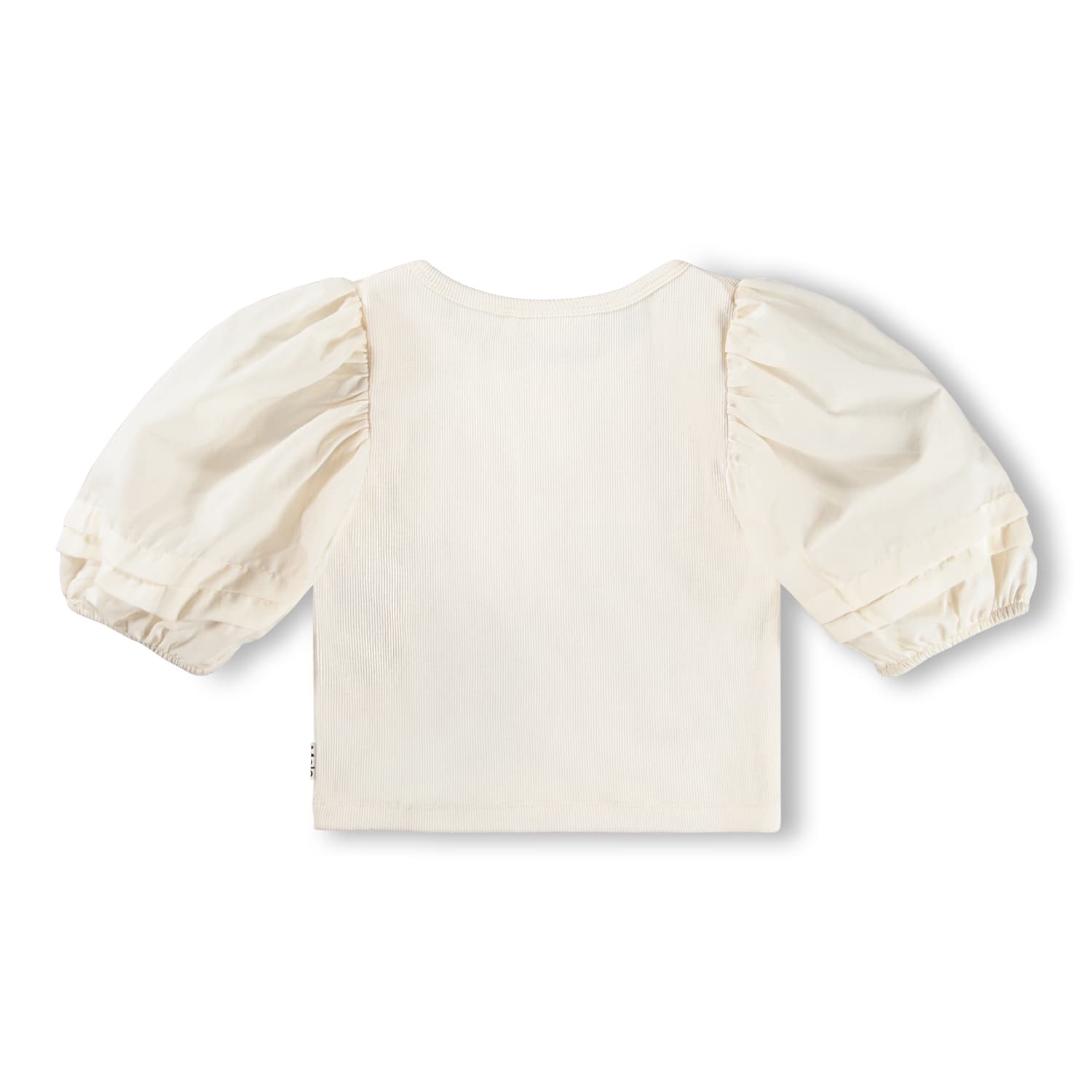 Maiou produs din bumbac organic,moale cu guler rotund si trei butoane in fata. Maioul are un fit mulat cu mineci pufoase din bumbac ferm, ceea ce da maiolui un look stilat.