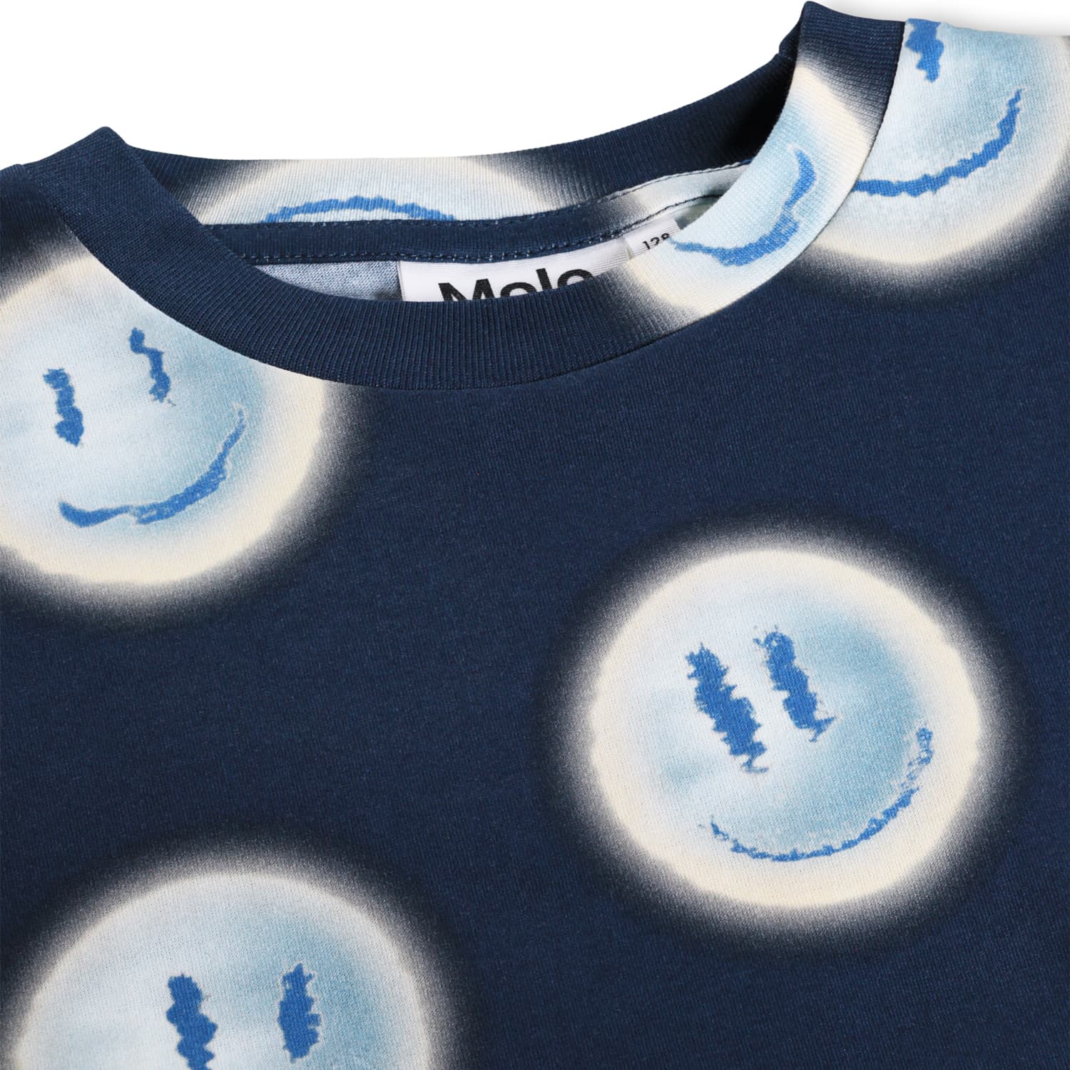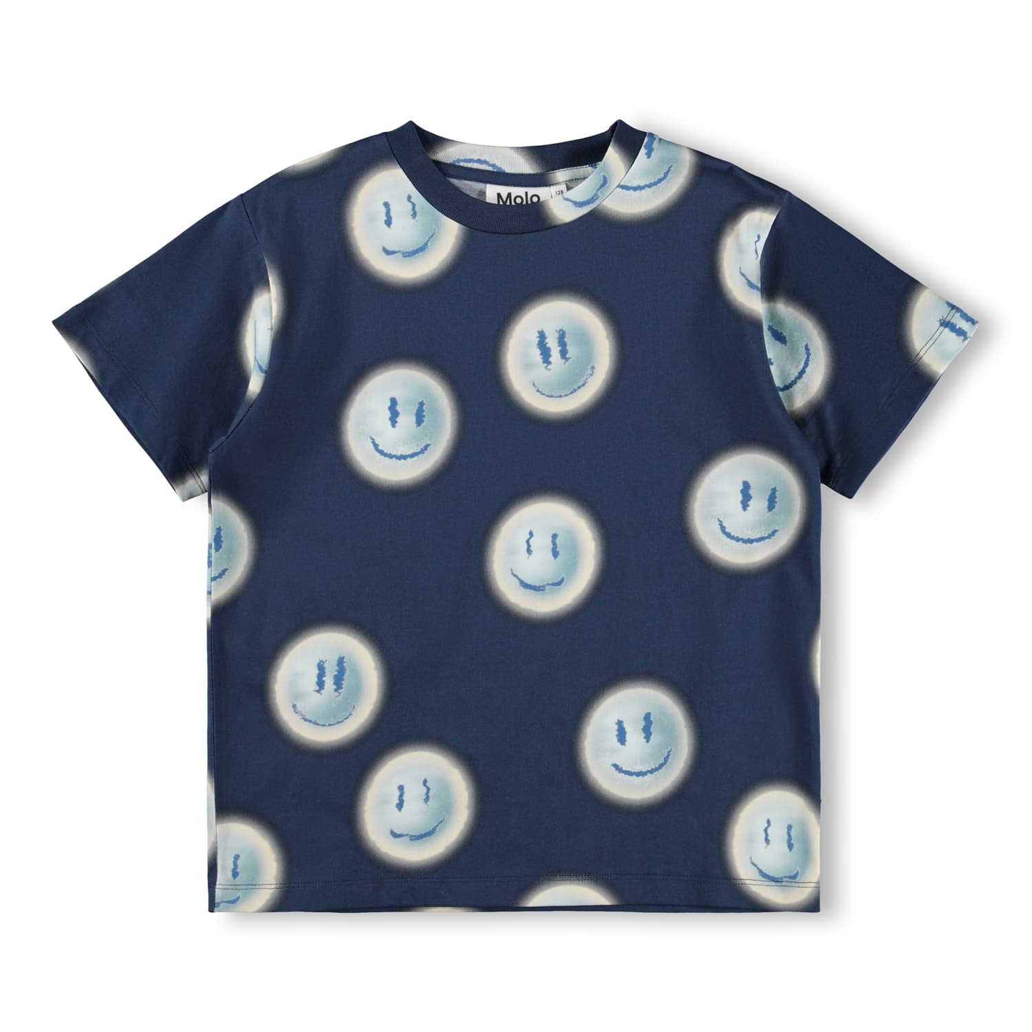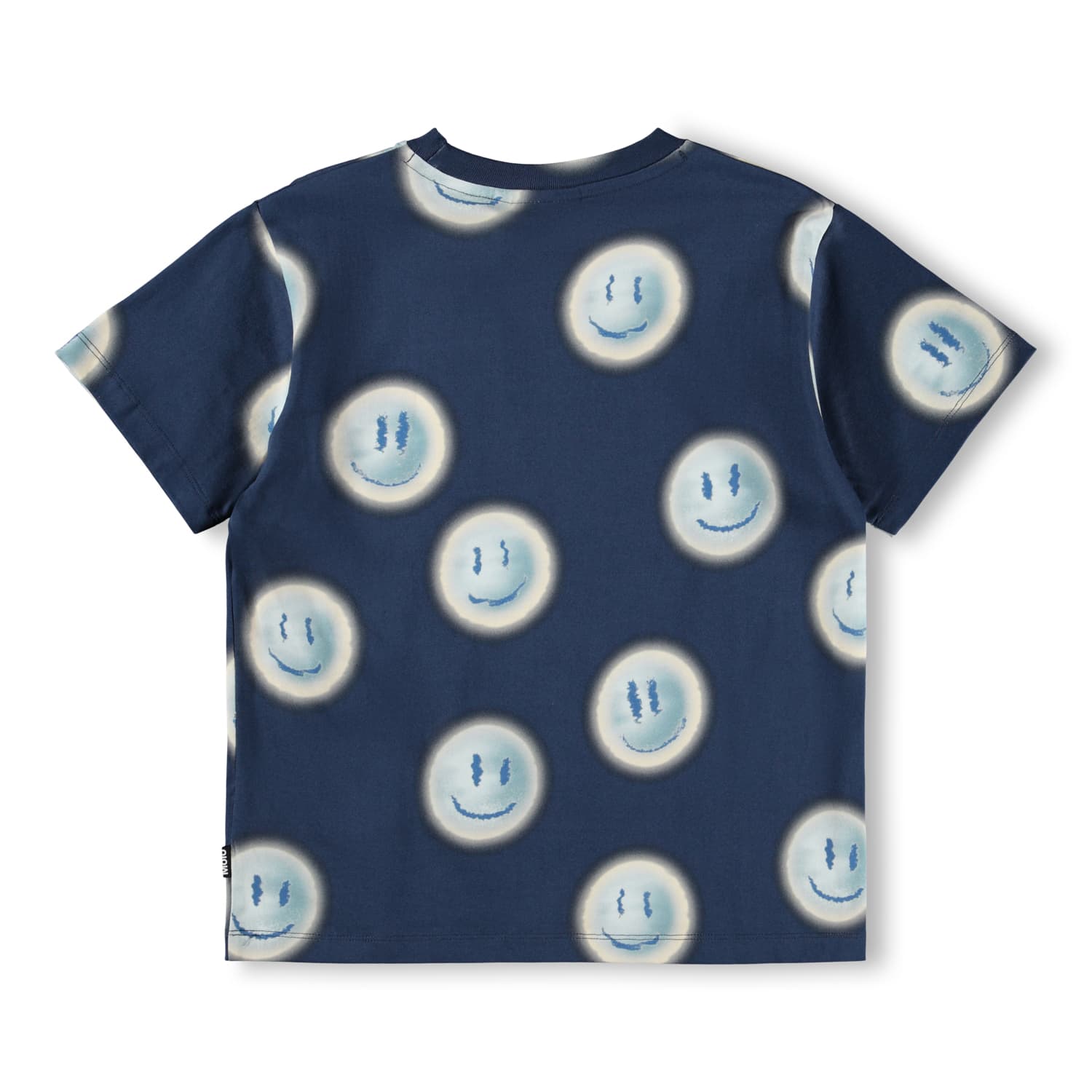 Maiou albastru produs din bumbac moale, organic cu maneci scurte. Maioul are un fit larg cu un print creativ.