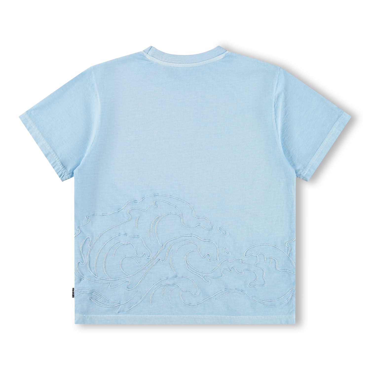 Maiou bleu produs din bumbac organic cu maneci scurte . Maioul are un fit larg cu valuri brodate in partea de jos.