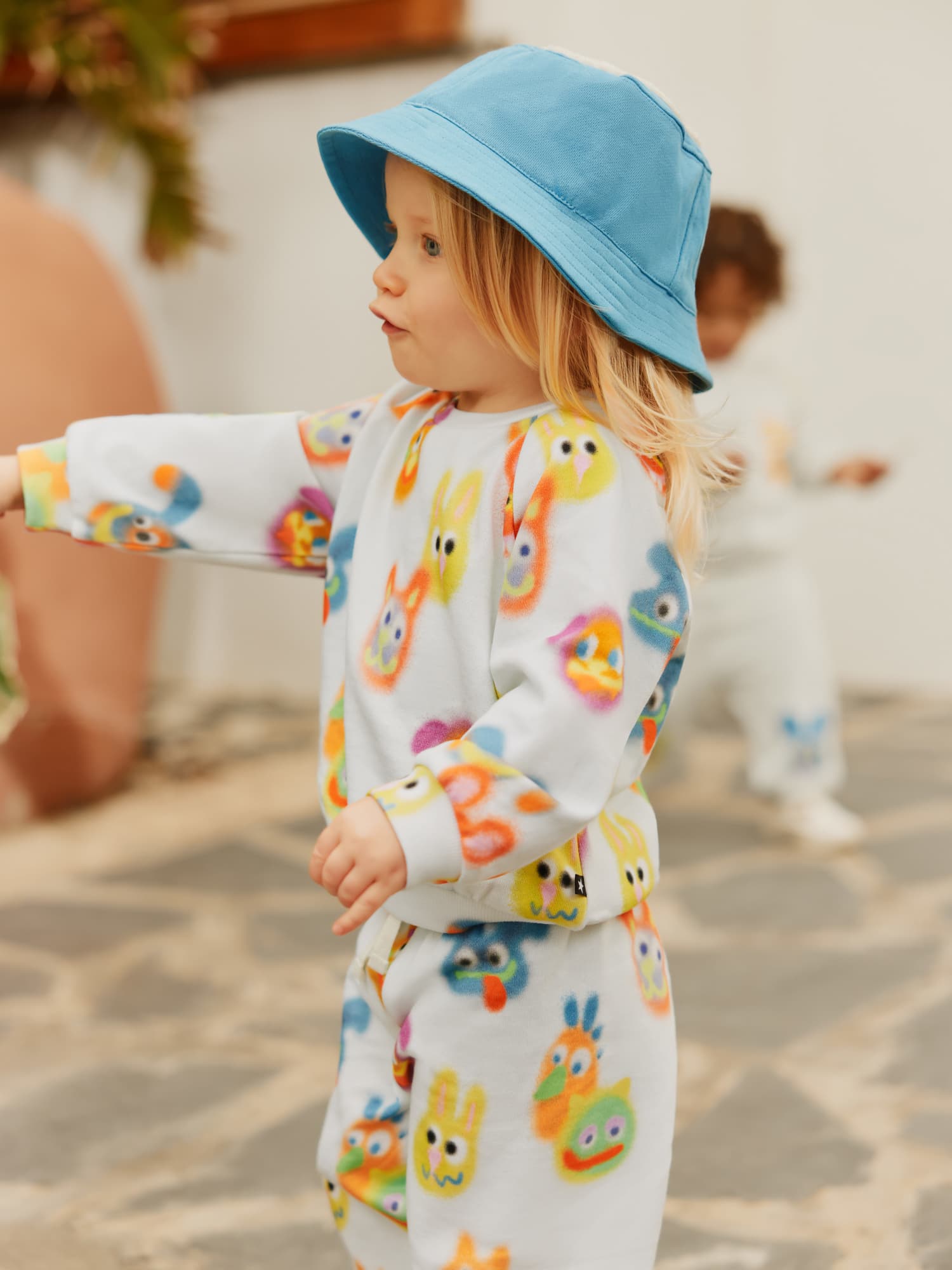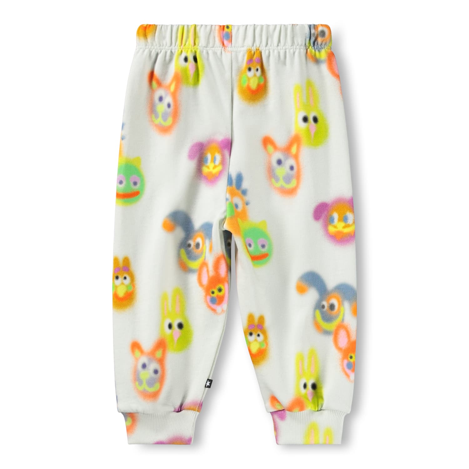Pantaloni sport beige, moi pentru cei mici din bumbac organic cu print tematica muzicala. Pantalonii sunt comfortabili ,au elastic si sireturi in talie .